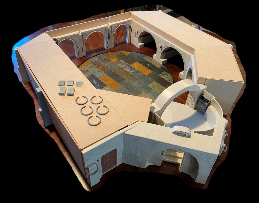 Does your Haslab Cantina feel... unfinished? Tidy up that ugly outside with a real exterior. Assemble these precut panels to create an outer shell to enclose the alcoves and give your playset a more completed look. Included are 5 resin cast support pillars with hitch rings to secure your ride, whether speeder or beast. There is no central roof included but that's the easy part and can be fabricated without much trouble. There is still some DIY involved such as cutting window holes, adding texture, and you will have to be careful and take your time to make sure things fit. Everyone's cantina may require its own unique adjustments.