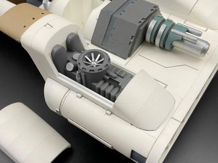 This small one man speeder measures approximately 7 x 3.5 x 2.5" and can hold one figure (not included) Comes in an easy to assemble unpainted kit. It includes a stand and will include a decal for the control panel. The canopy can be assembled in three different options.