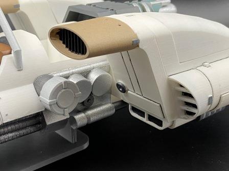Add a little more firepower to your TVC E-wing fighter with this Expanded Universe inspired dorsal cannon. Plugs into the droid socket. Pivots up and down. Comes in a4 piece unpainted kit. For best color match, use Krylon Fusion Glacier Grey