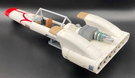 Capable of seating two figures and a droid, the White Wizard is made for speed. This kit is 15" long when assembled and has features like removable engine covers, clear windshield, and two optional cargo spaces. This kit comes in approximately 40 unpainted and unassembled pieces. Kit includes decals, directions, and display stand.