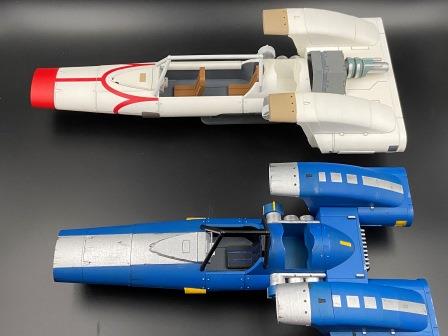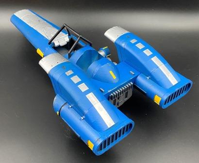 Capable of seating one figure and a droid, the Racing Speeder shares the same features as the White Witch. However, at 13" long it is slightly shorter, a one seater, and only one optional cargo area. The different grill in the nose and separated engine pods are the biggest cosmetic differences. This kit comes in approximately 35 unpainted and unassembled pieces. Kit includes decals, directions, and display stand.