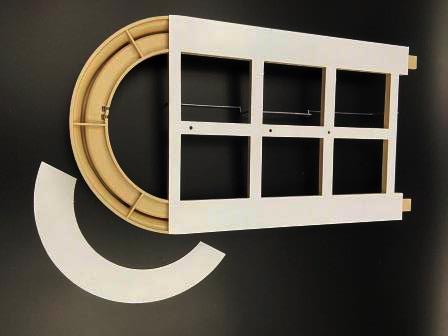 Cover up all the hollow ugliness on you Haslab Cantina bar hood with this simple precision cut plastic cover. Its two thin, and therefore lightweight, styrene pieces that can be placed on top. Recommend using a non-permanent glue to attach. You may also wish to notch out areas where the piping locks in place. The three small holes in the middle can help with alignment.