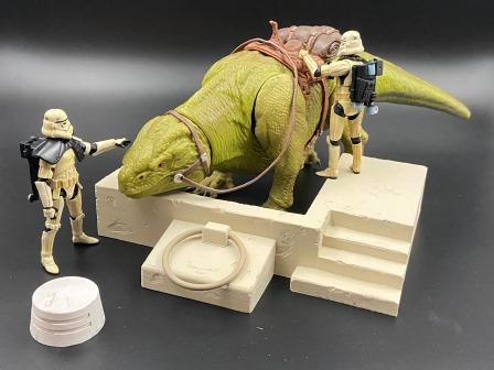 While you're in the cantina, you may need a place to park your giant desert lizard. Includes a water and feed trough which can be used inside or outside the pen. The lizard pen comes as an unpainted and unassembled 5 piece kit.